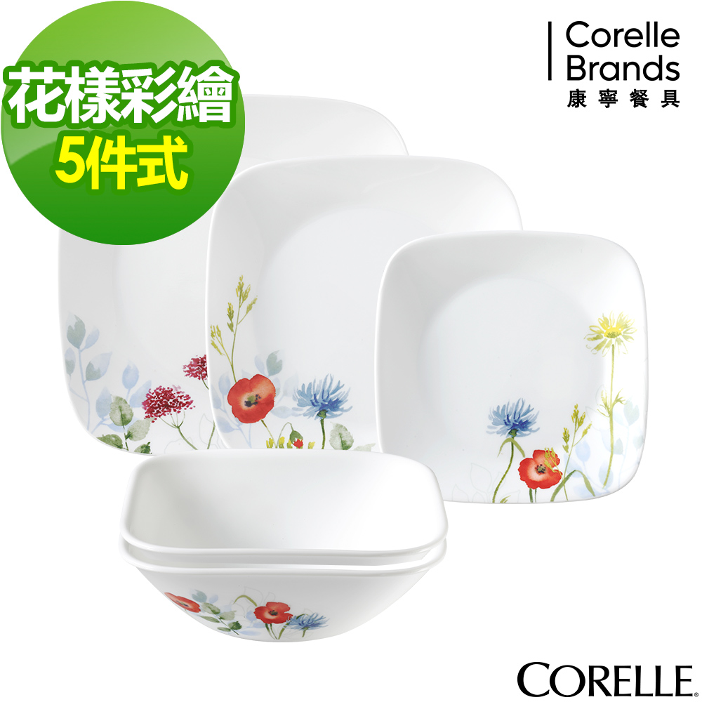 CORELLE 康寧-花漾彩繪5件式餐盤組方形餐盤組(504)